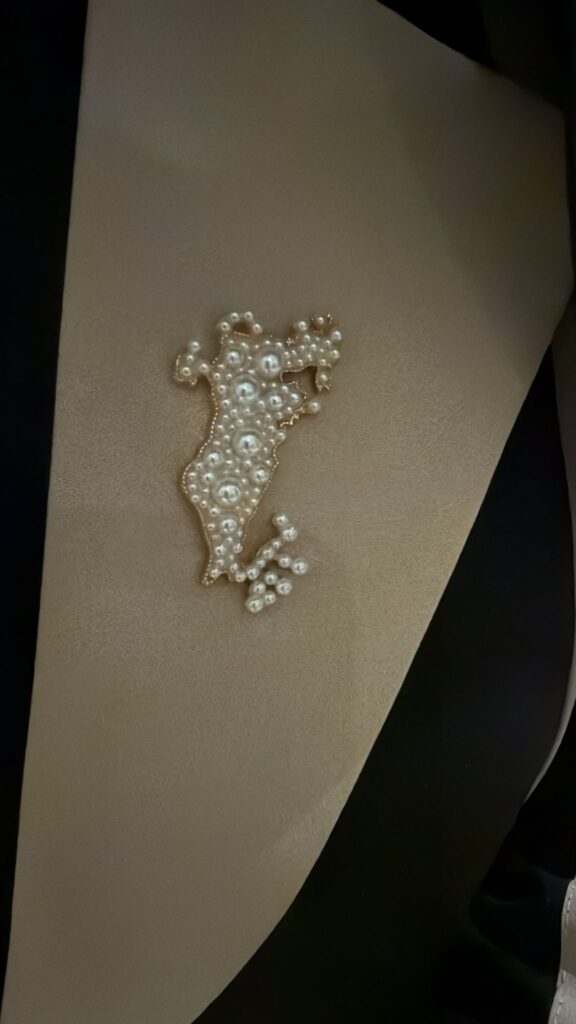High quality luxurious brooch (clip pin), designed with precision to outline State of Qatar’s map. Filled with different sizes of artificial pearls representing major cities and plated with elegant gold color