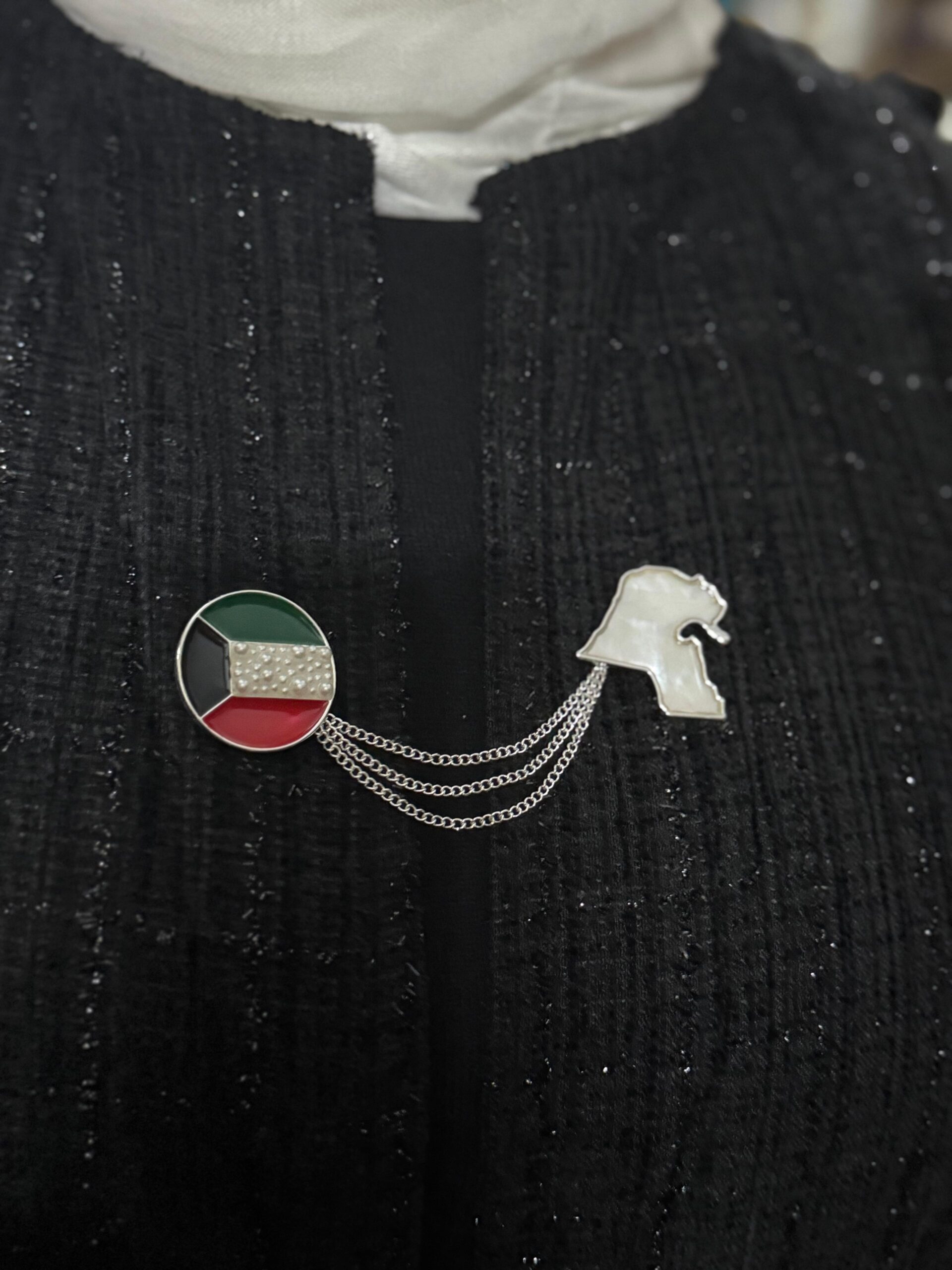 Perfect to wear in celebration of Kuwait National Day, in official ceremonies, or with any outfit to elevate your look. Can be worn with chains, or flag alone, or map alone, or flag and map without the chains
